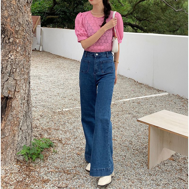Washed Straight Slim Fit High Waist Ripped Wide Leg Denim Jeans