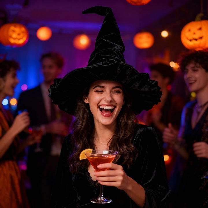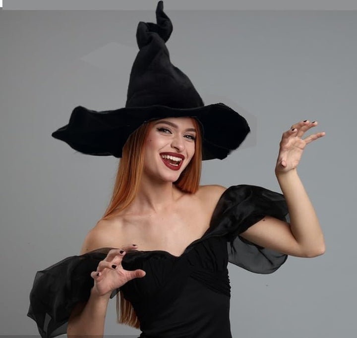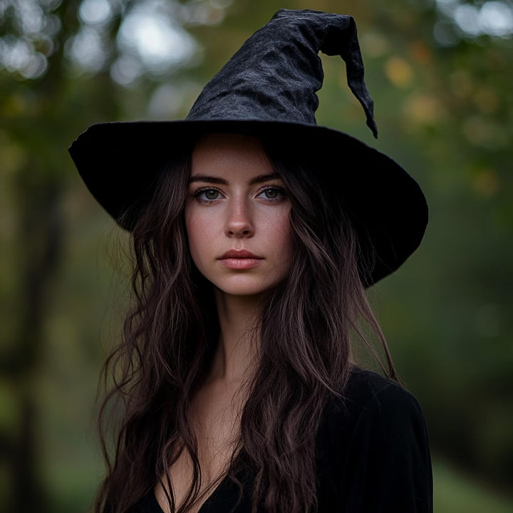 Unlike rigid witch hats, our full-wire-frame construction allows complete customization of the brim and cone—bend it dramatic, whimsical, or mysterious to match your unique Halloween vibe. The premium velvety finish and elegant wide brim elevate this beyond basic costume accessories.