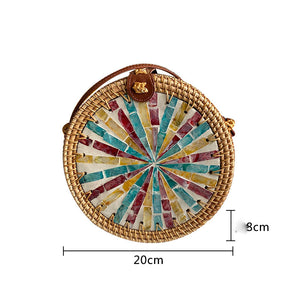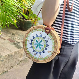 Bohemian Seashell Floral Round Rattan Purse Bali Clutch Shoulder Bag