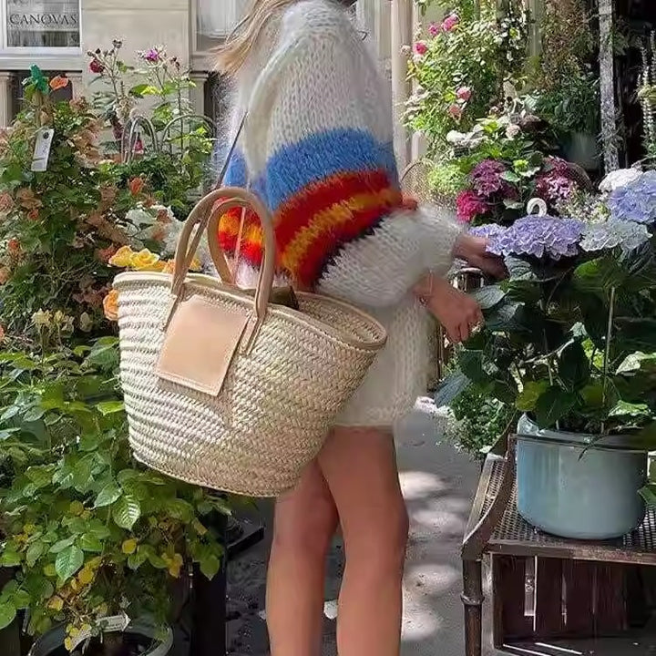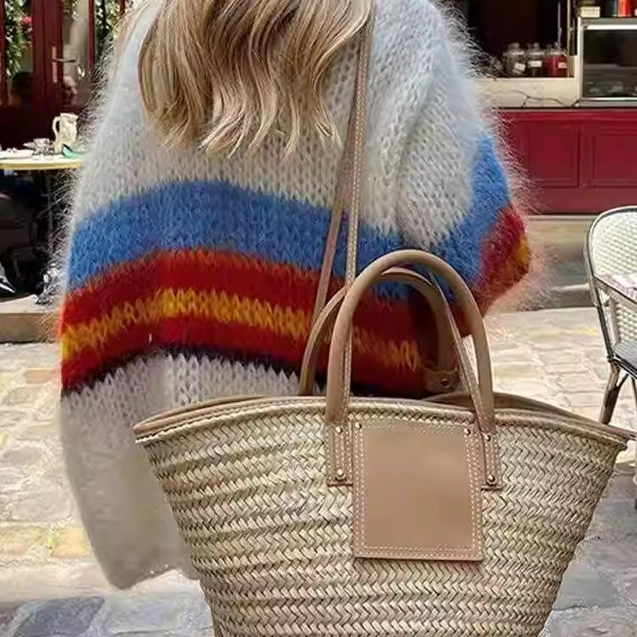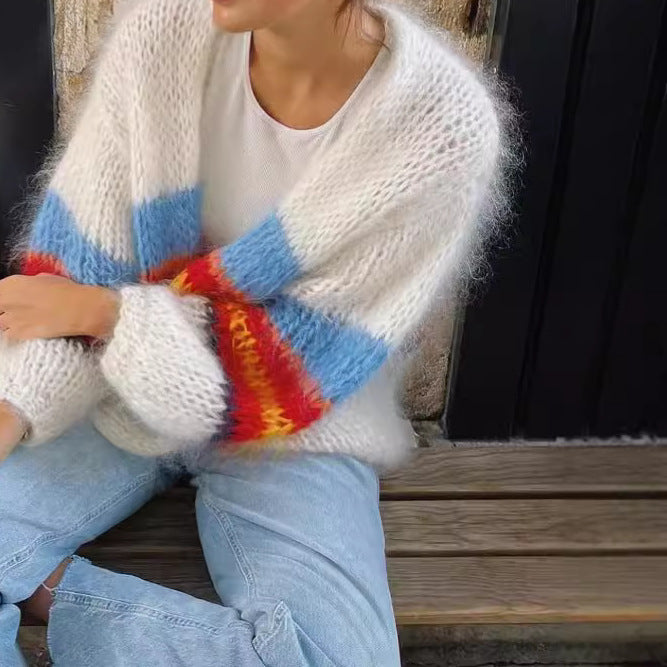 Unlike bulky sweaters, our lightweight colorblock design delivers fashion-forward warmth without sacrificing comfort. The eye-catching stripes and slouchy silhouette create a trendy, layered look that pairs perfectly with everything from leggings to jeans.