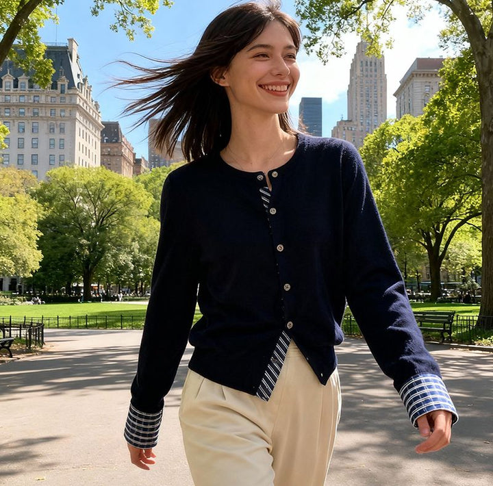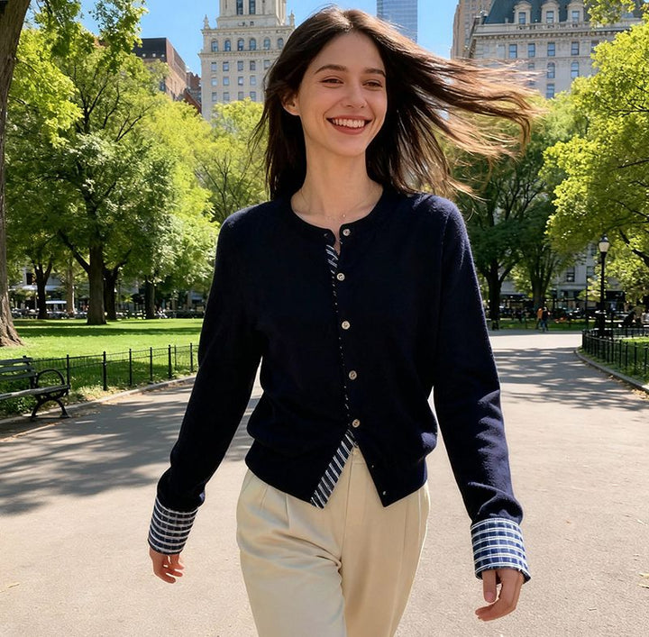 The fake two piece knitted top features fake two piece knitted cardigan with color block checked cuffs and button up design. The button down knitted shirt can be multi styled and fit every body type, flattering on all body types, paired with any shorts, skirts, jeans & pants, get yourself a trendy outfit for street style, beaches and travel.