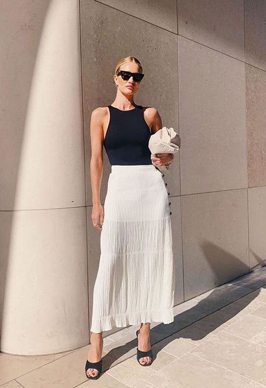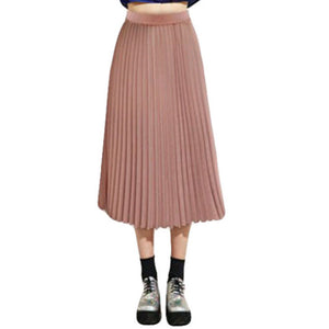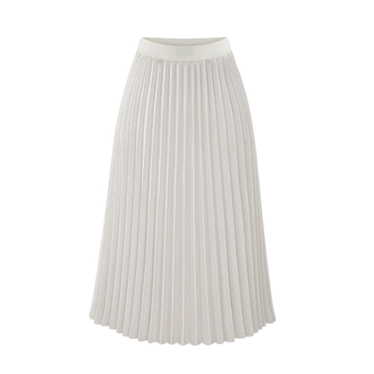 Design: Solid Color, High Waisted, Chiffon, Retro, Pleated, Midi Length and Casual Style.