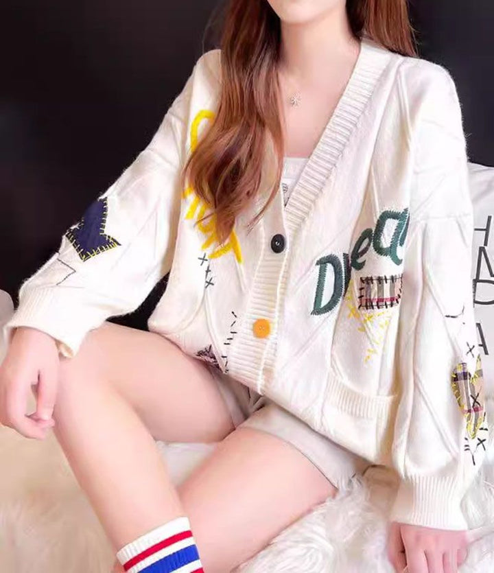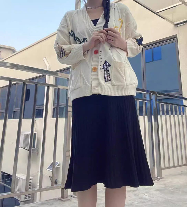 This braid knit embroidery cardigan comes in a soft, baggy, loose chunky knit with hand knit baggy lantern sleeves. The Asymmetric Patch Cardigan Sweater is popular with cami, tank, pants, denim, jeans, leggings, scarves or dresses, and get wrapped up & cozy feel with any layers underneadh.