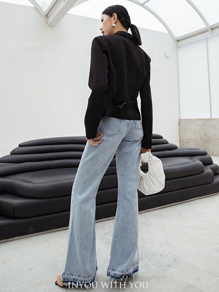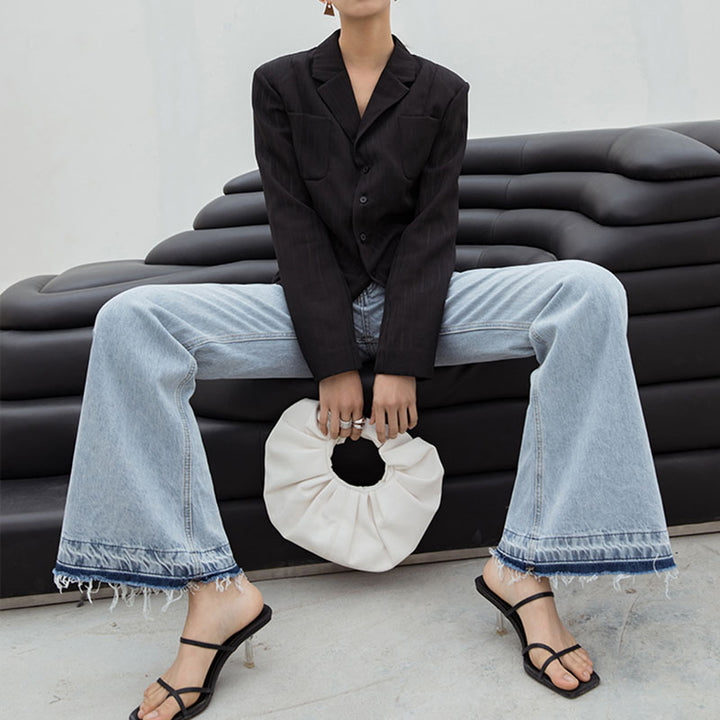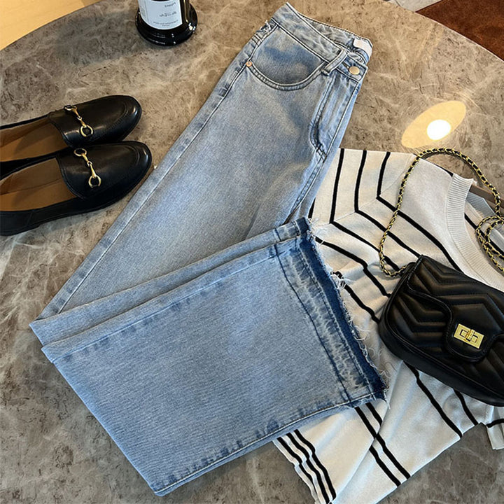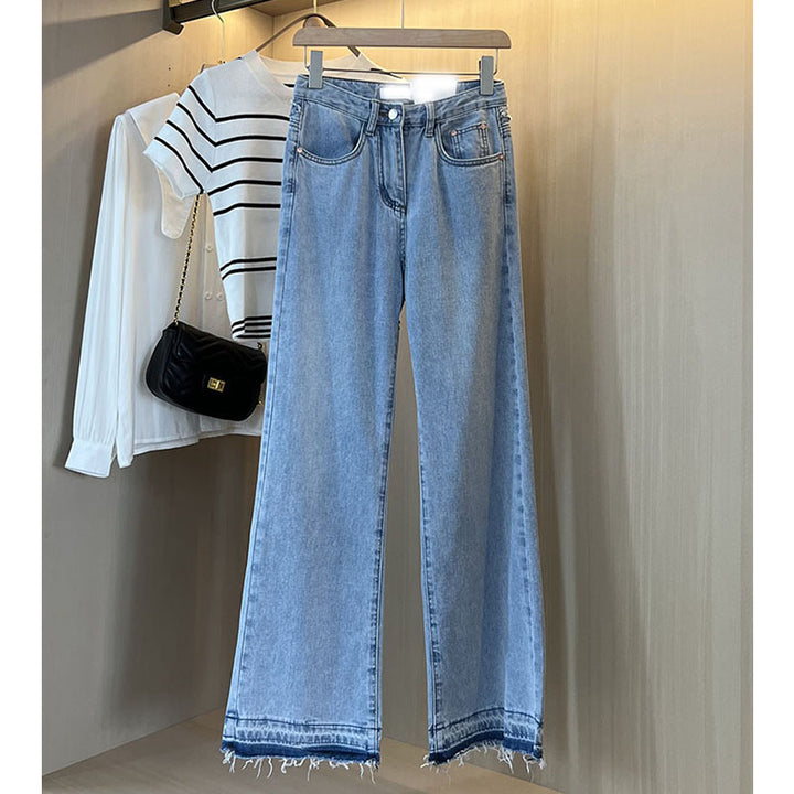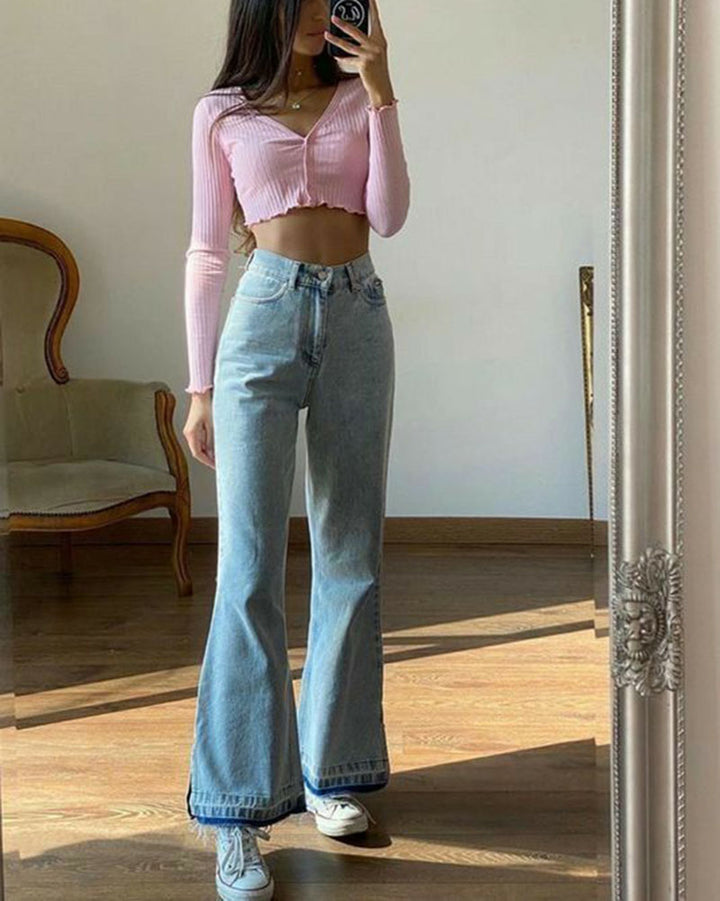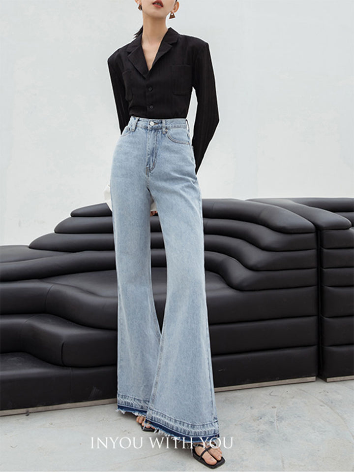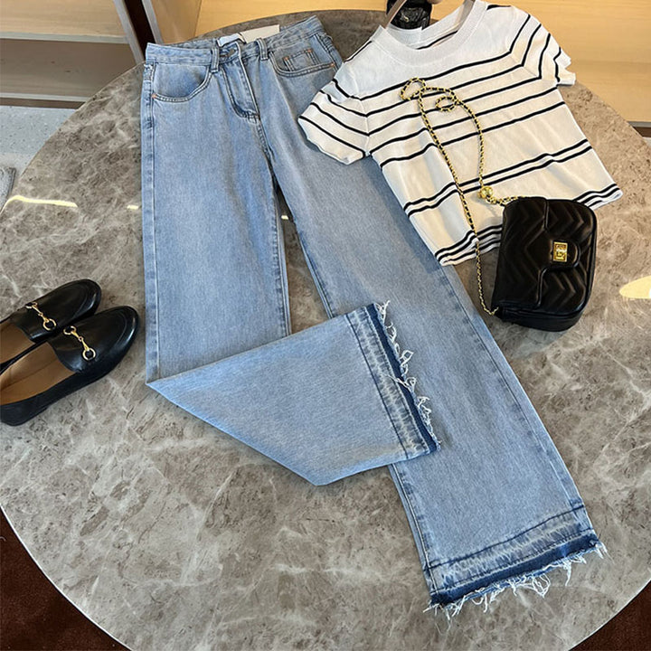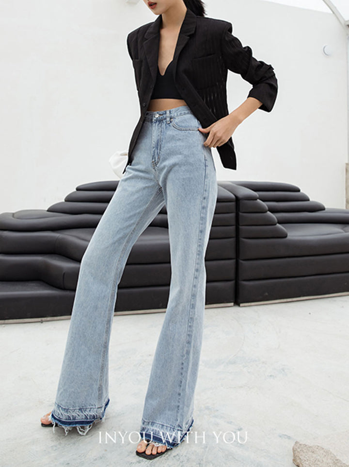 Distressed Bohemian Ripped Hem Flare Jeans High Waisted Denim Pants