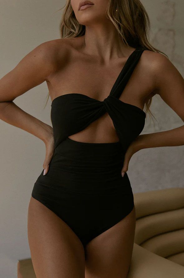 Honey Asymmetrical Cut Out One Piece Swimsuit Bodysuit