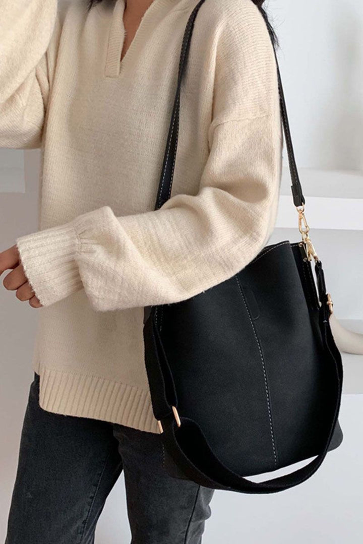 This oversized carryall bag features classic vegan suede, cozy & durable wide thick straps, strengthened leather bottom, snap closure, adjustable shoulder strap and handbag tote, cute travel bag with inner pouch and enough room for the essentials. Reinforced bottom and hardware for better durability. Note: 1 Inch=2.54 CM; 1 CM=0.39 Inch, Due to different batches, the bag's liner may be different.
