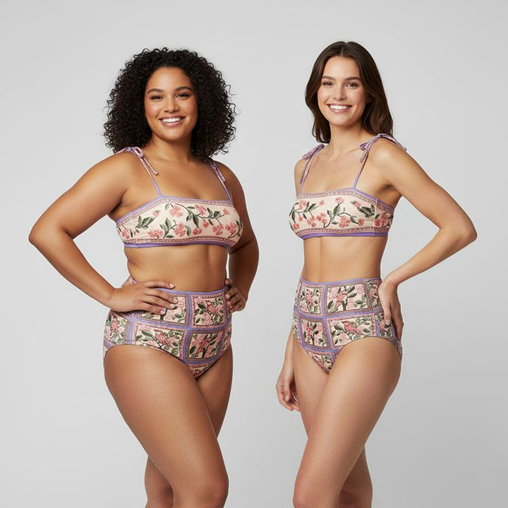 Magenta Floral Tie Shoulder Crop Top High Waisted Bikini