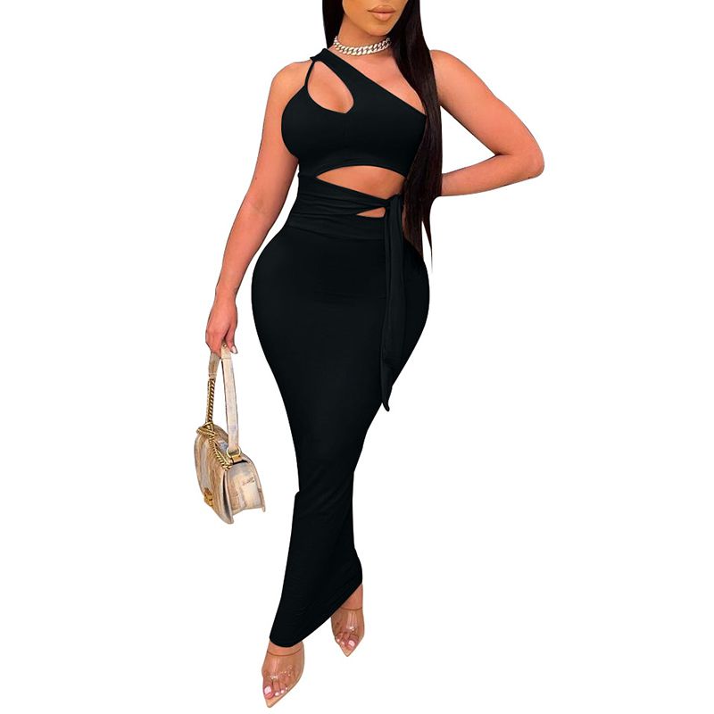 Design: Cut Out Shoulder, One Shoulder, Tight, Tie Side, Cutouts, Midi Length and Trendy Style.