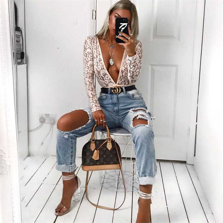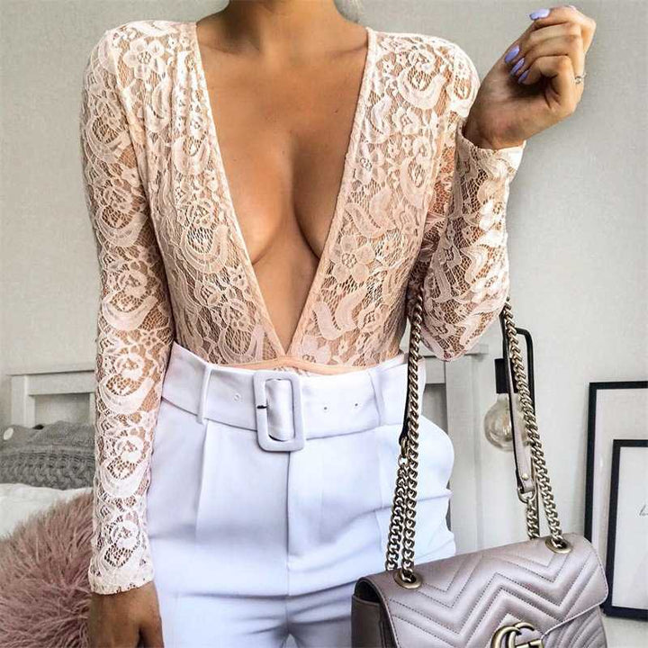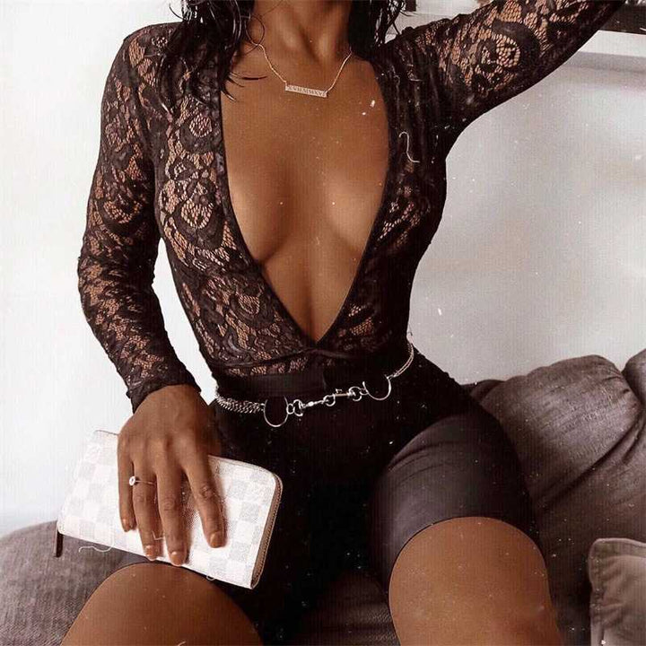 Free Shipping+10% OFF 1st Order, Free Exchange & Easy Returns.?This?sexy mesh?lace bodysuit long?sleeve?features?trendy boho lace,?push up plunge?and thong body suit style. Feminine sexy?& glamous is?elevated to a new level. A long sleeve body suits?for?any body type, for easy team?with those pants?& shorts in your wardrobe.
