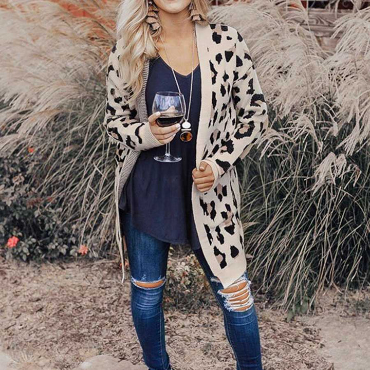 The long knitted cardigans for women open cardigan sweaters features knit, lepard knitted, longling outline and elastic retro cuffs. A must have basic fall must have cardigan 2019 for any underneath, such as cami, vest, crops, bandeaus, dress,tees, bodysuits, jeans and shorts.