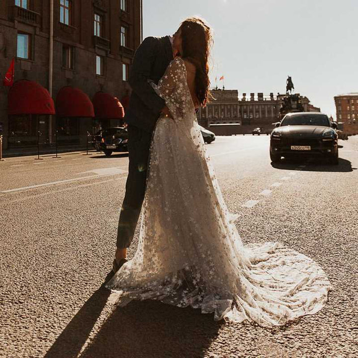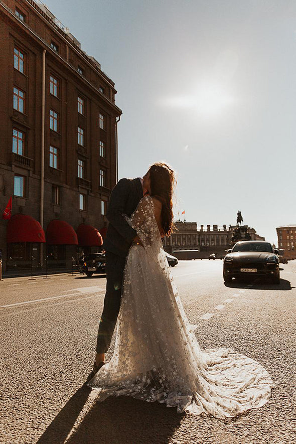 - Thewhite mesh overlay dress features handmade stars embellished all over the dress, plunging, sheer lace back, open back, mesh overlay prom dress and fitted most bust sizes.