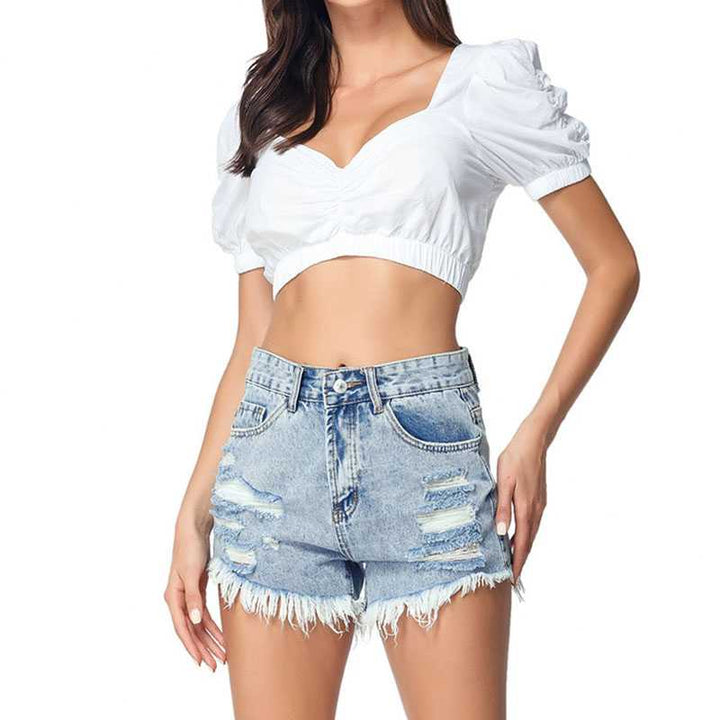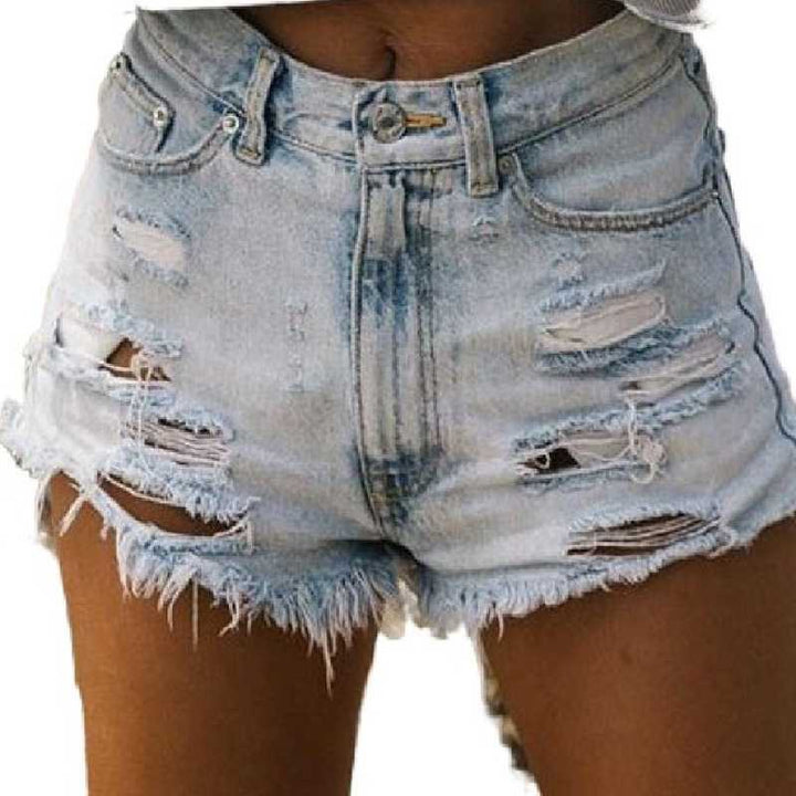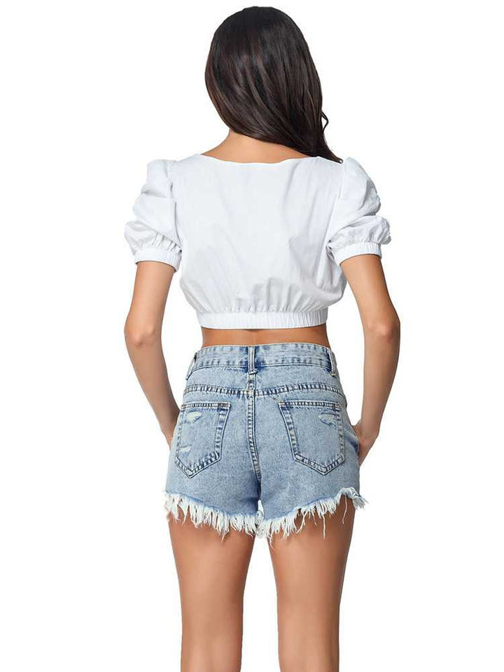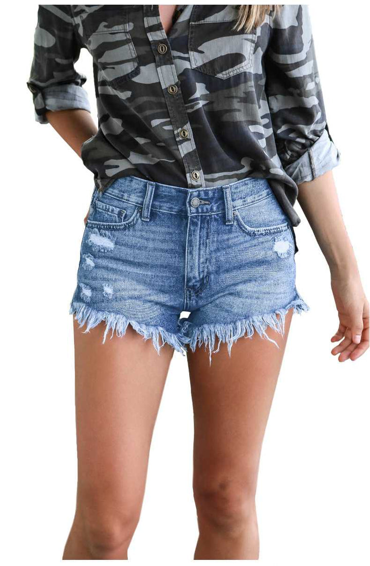 The high waisted frayed jean shorts features slimming fit, Belt loop, fringe, button, and pockets side. The denim shorts for women is relaxed fit, and made from a comfortable fabric with stretch. One of the essential shorts for any body type, for easy mix match with those clothes in your wardrobe, coming up with new mix match outfits all the year around.
