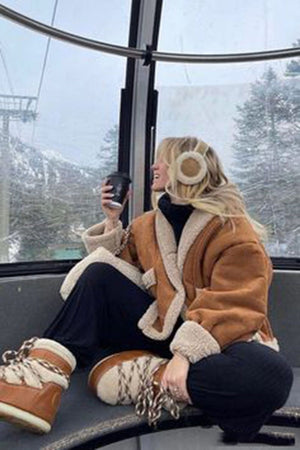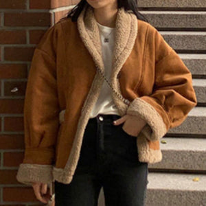Tan Faux Lambskin Suede Double Faced Faux Fur Shearling Jacket