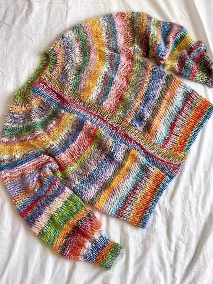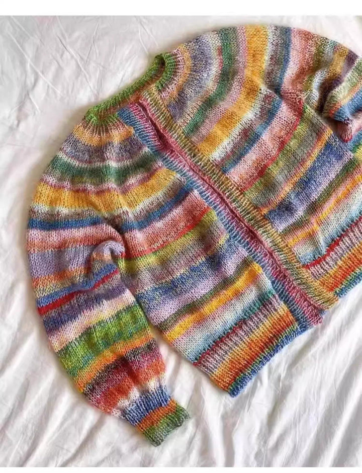 Design: Casual, Oversized, Short, Crochet Knitting, Rainbow, Striped, Slimming, Front Open, Button Closure and Knitted.