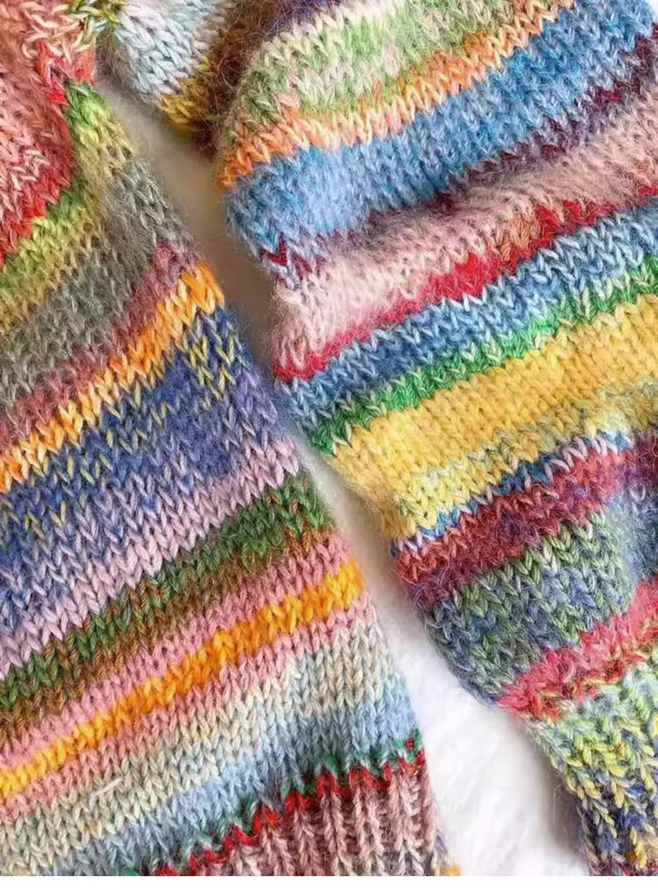 Cute Rainbow Striped V Neck Knit Holiday Cardigan Sweater