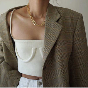 This ribbed tank top features double layered fabric, rolled strap, slimming square neck, underwired decorative detail, cropped and elastic fitting. The knit tube crop tank top is one of the most popular basic summer essentials.