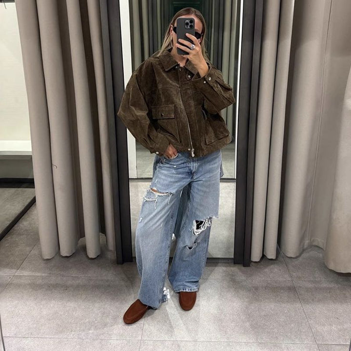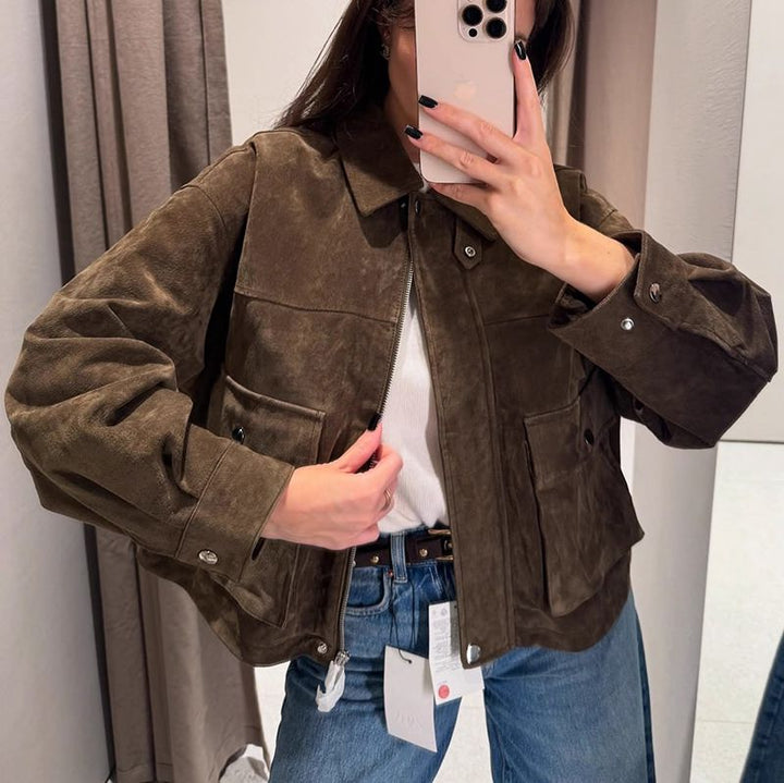 Classic Faux Suede Leather Bomber Jacket – Timeless Style Meets Modern Craftsmanship