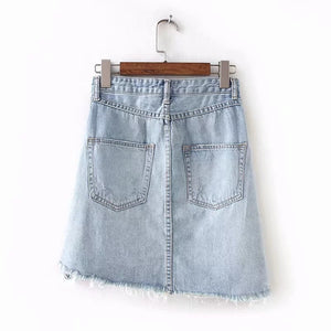10% OFF 1st Order,?Free Shipping $60, Free Exchange&Easy Returns. The retro ripped denim skirt?features distressed-finish twill in a slim high-rise fit?and?pockets. Notched front centre seam and frayed hem.?One of the ?skirts for?any body type, for easy mix match with those?crop tops, sweaters, tees & camis in your wardrobe, coming up with new mix match outfits all the year around.